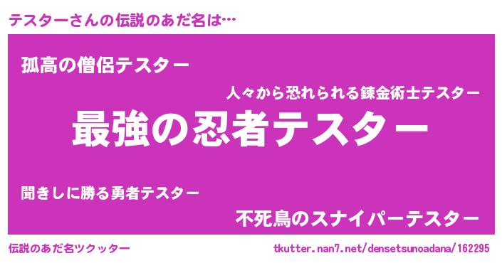 | 意味不明あだ名 | 『テスターフォーエバー』『自称テスター』 |