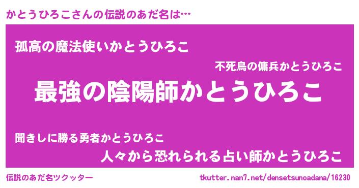| ファンタジー風あだ名 | 『エターナルカトウヒロコー』 |