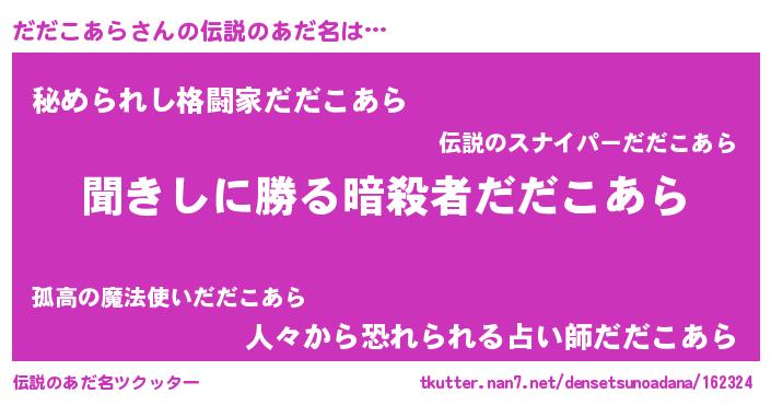 | 男性向けラノベタイトル風あだ名 | 『だだこあらという概念が存在しない退屈な世界 』 |