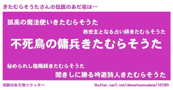 | ヒーロー風カッコイイあだ名 | 『スーパーキタムラソウタ』 |