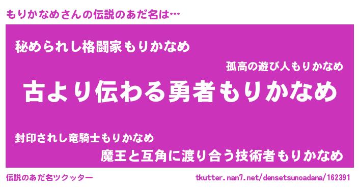 | 女子向けラノベタイトル風あだ名 | 『闇のもりかなめ』 |