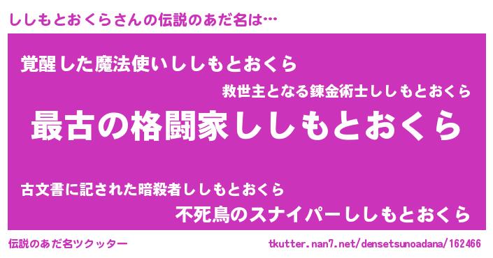 | ヒーロー風カッコイイあだ名 | 『仮面シシダー』『魔戒騎士シシ』 |