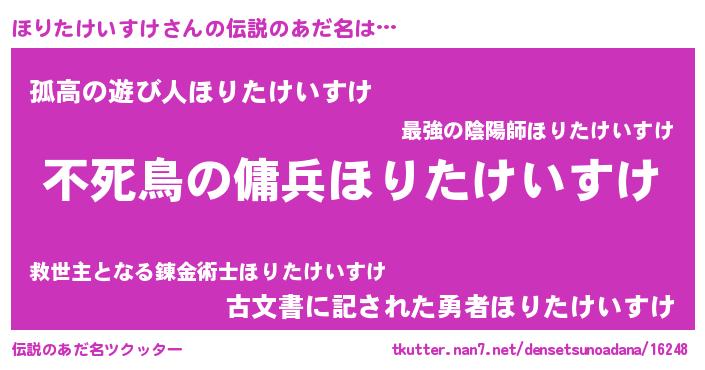 | 胡散臭い通販商品みたいなあだ名 | 『モテモテ間違いなし水晶球…その名も「ほりたけいすけ」』 |