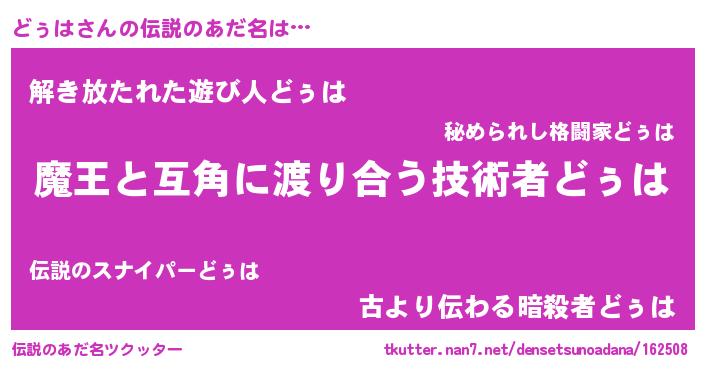 | ヒーロー風カッコイイあだ名 | 『サイバー戦士ドゥハ』『仮面ドゥダー』 |