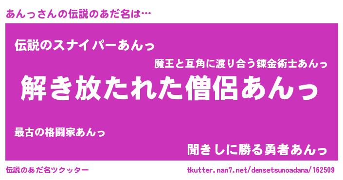 | 意味不明あだ名 | 『とにかく怪しいあんっ』『自称あんっ』 |