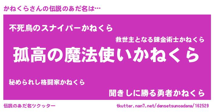 | ファンタジー風あだ名 | 『カークカネラー』『ファントムカネス』 |