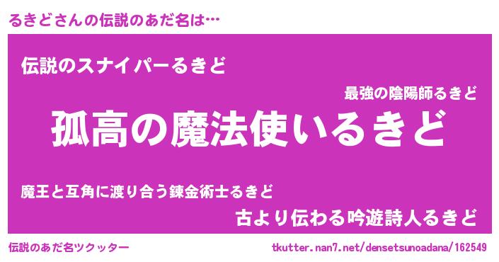 | ヒーロー風カッコイイあだ名 | 『暗黒騎士ルキ』『スーパールキド』 |