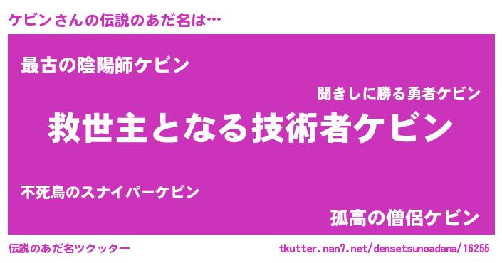 | ヒーロー風カッコイイあだ名 | 『天空の使者ケビン』『仮面ケビダー』 |
