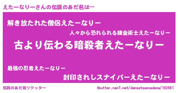 | 意味不明あだ名 | 『永久保存えたーなりー』 |