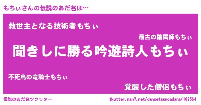 | ヒーロー風カッコイイあだ名 | 『ネオモチィ』『正義の使者もちぃ』 |