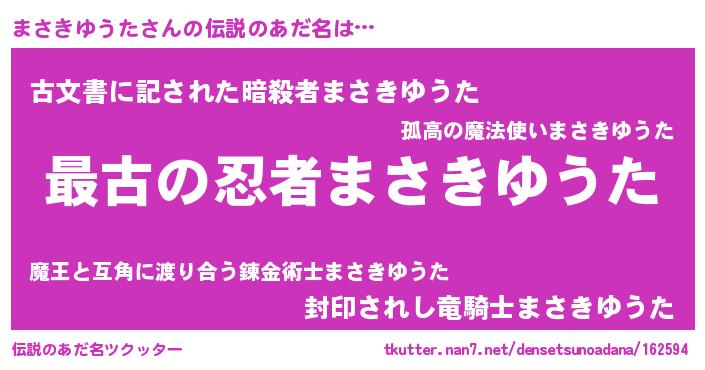 | 意味不明あだ名 | 『まさきゆうたフォーエバー』 |