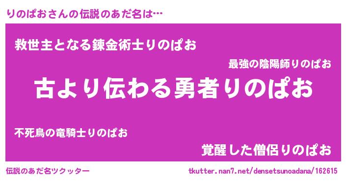 | ヒーロー風カッコイイあだ名 | 『ネオリノパオ』『天空の使者りのぱお』 |
