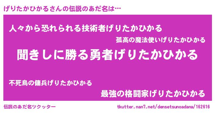 | 意味不明あだ名 | 『永久保存げりたかひかる』 |