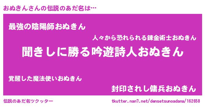 | 男性向けラノベタイトル風あだ名 | 『おぬきんという概念が存在しない退屈な世界 』 |