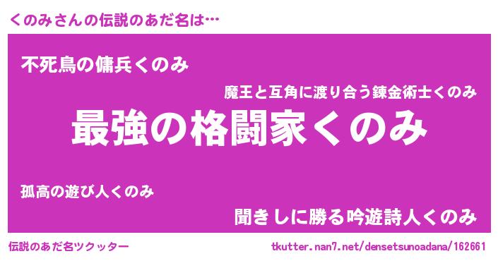 | 意味不明あだ名 | 『くのみフォーエバー』『ペロリンくのみ』 |