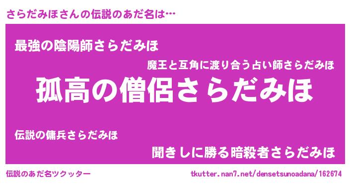 | 胡散臭い通販商品みたいなあだ名 | 『信頼と実績のネックレス…その名も「さらだみほ」』 |