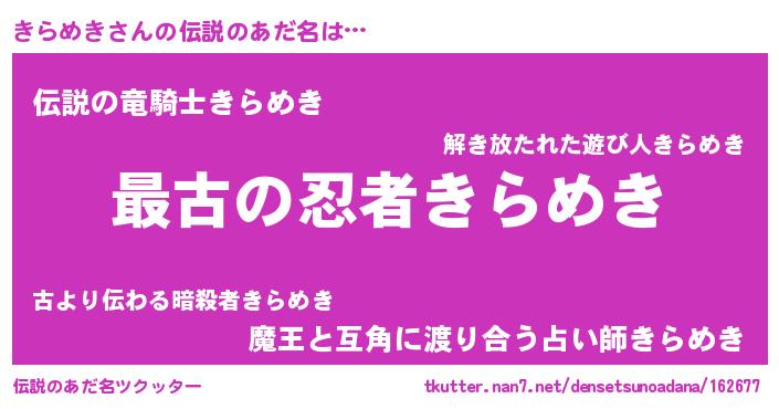 | ヒーロー風カッコイイあだ名 | 『ウルトラきらめきマン』『仮面キラダー』 |