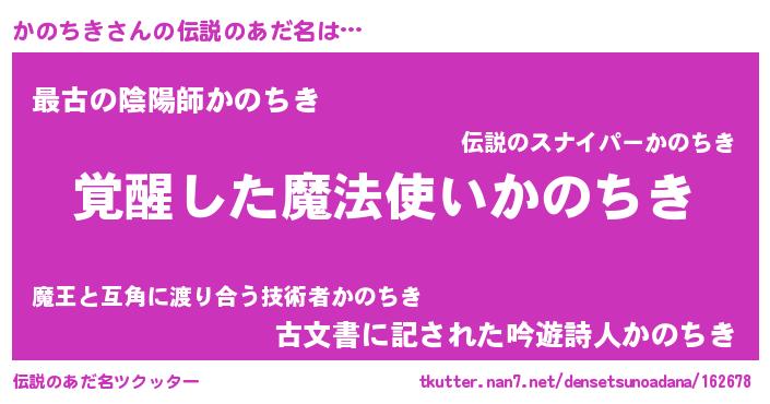 | 意味不明あだ名 | 『とにかく怪しいかのちき』 |