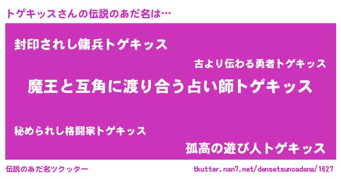 | ヒーロー風カッコイイあだ名 | 『愛の使者トゲキッス』『魔戒騎士トゲ』 |