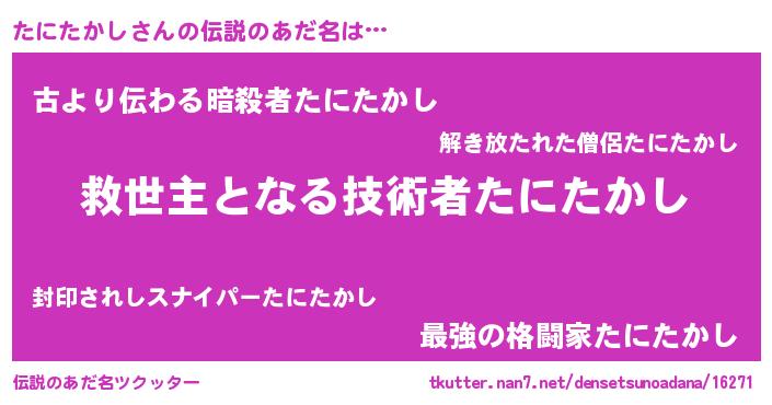 | 男性向けラノベタイトル風あだ名 | 『ノーゲーム・ノータニタカシ』 |