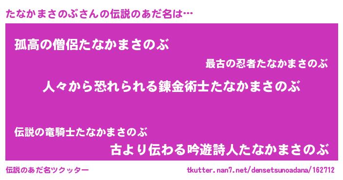 | ヘコむあだ名 | 『たなっちょ』『たなかまさのぶ(笑)』 |