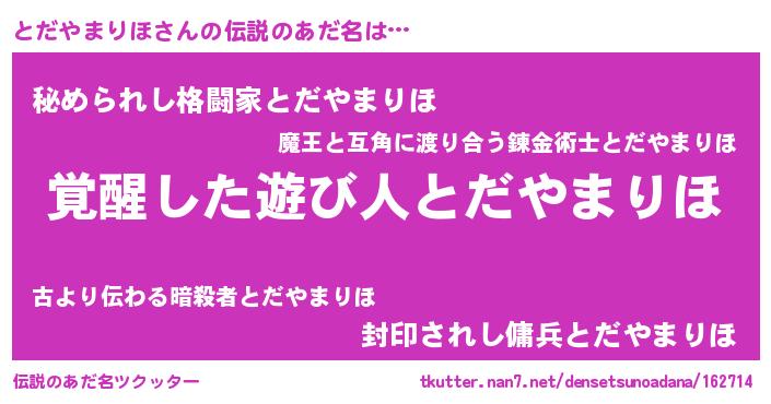 | 意味不明あだ名 | 『自称とだやまりほ』 |