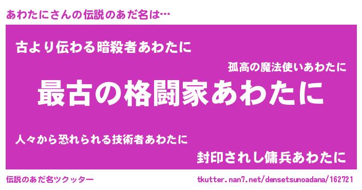 | ヒーロー風カッコイイあだ名 | 『ウルトラあわたにマン』『ネオアワタニ』 |