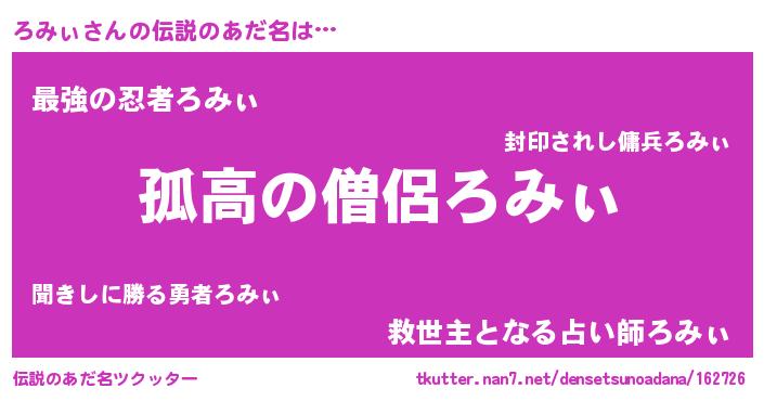| ヒーロー風カッコイイあだ名 | 『超時空戦士ロミィ』『幻影騎士ロミ』 |