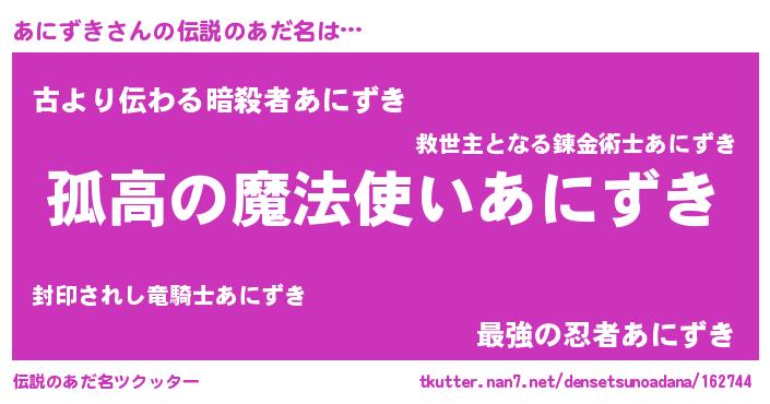 | ヒーロー風カッコイイあだ名 | 『黄金騎士アニ』『サイバー戦士アニズキ』 |