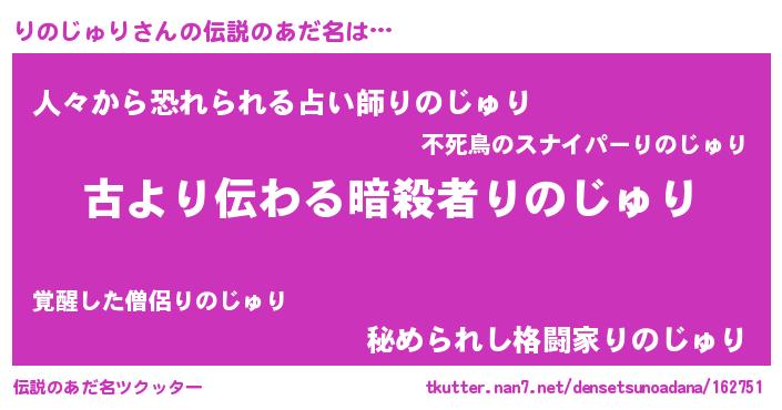 | 女子向けラノベタイトル風あだ名 | 『りのじゅりの契約王妃』 |