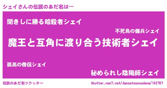 | ヘコむあだ名 | 『シェイ(小並感)』『なまこ酢』 |