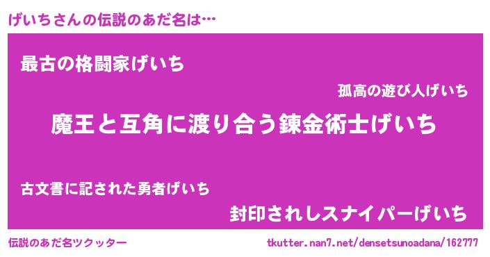 | ヒーロー風カッコイイあだ名 | 『愛の使者げいち』『ウルトラげいちマン』 |