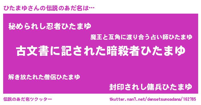 | ヒーロー風カッコイイあだ名 | 『ネオヒタマユ』『ウルトラひたまゆマン』 |