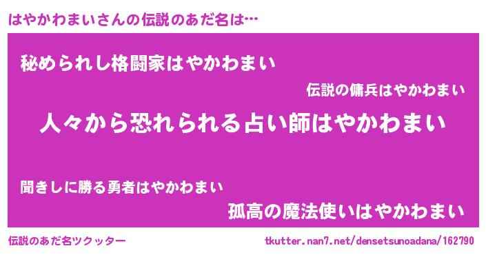 | ヒーロー風カッコイイあだ名 | 『正義の使者はやかわまい』 |