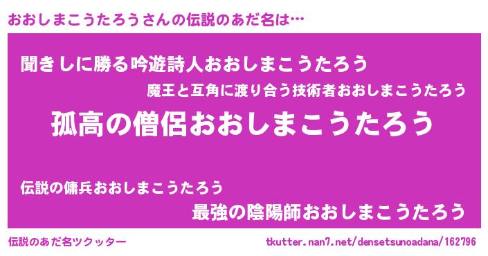 | 意味不明あだ名 | 『自称おおしまこうたろう』 |