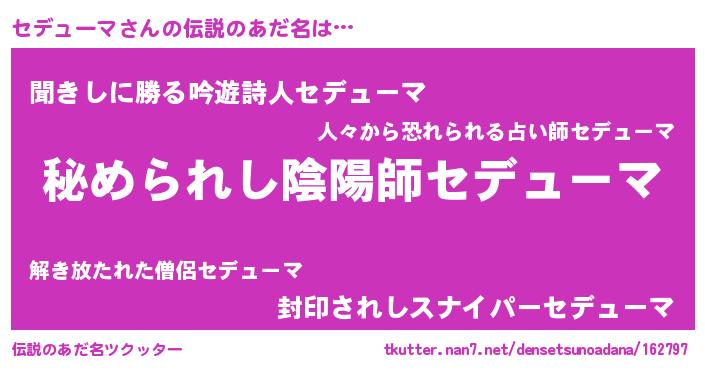 | 意味不明あだ名 | 『セデューマフォーエバー』 |