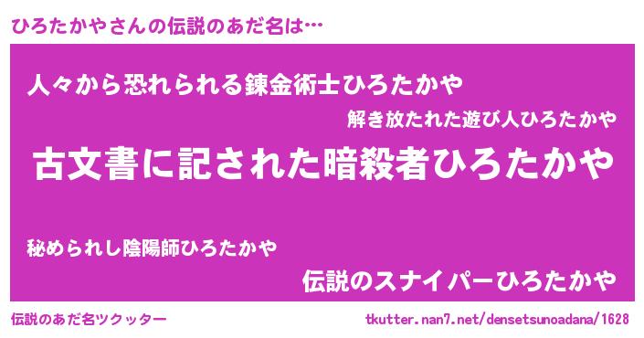 | 意味不明あだ名 | 『永久保存ひろたかや』『自称ひろたかや』 |
