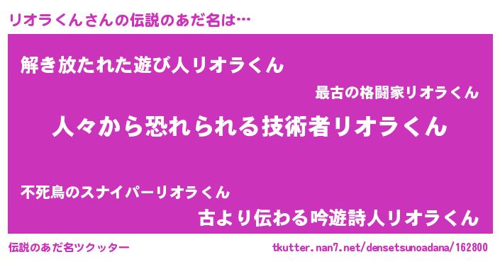 | 意味不明あだ名 | 『住所不定無職リオラくん(9歳)』 |
