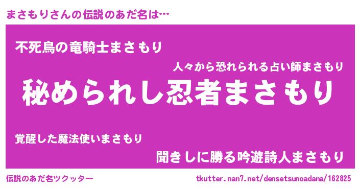 | 男性向けラノベタイトル風あだ名 | 『緋弾のマサモリ』『まさもりの憂鬱』 |
