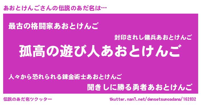 | ヒーロー風カッコイイあだ名 | 『仮面アオダー』『暗黒騎士アオ』 |