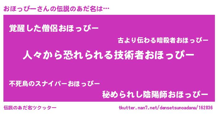 | ヒーロー風カッコイイあだ名 | 『正義の使者おほっぴー』『仮面オホダー』 |