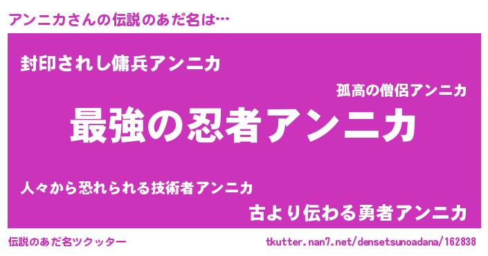 | 意味不明あだ名 | 『住所不定無職アンニカ(40歳)』 |