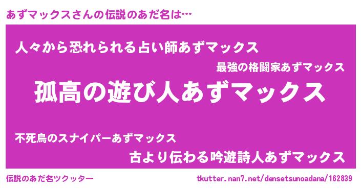 | 男性向けラノベタイトル風あだ名 | 『緋弾のアズマックス』 |