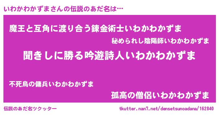 | 意味不明あだ名 | 『永久保存いわかわかずま』 |