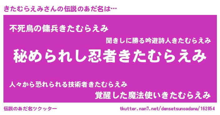 | 意味不明あだ名 | 『住所不定無職きたむらえみ(53歳)』 |