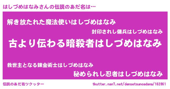 | 意味不明あだ名 | 『永久保存はしづめはなみ』 |