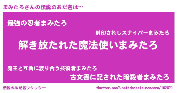| 意味不明あだ名 | 『とにかく怪しいまみたろ』 |