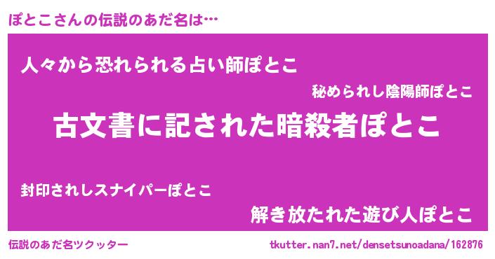 | 男性向けラノベタイトル風あだ名 | 『ぽとこに滅ぼされるだけの簡単なお仕事です』 |