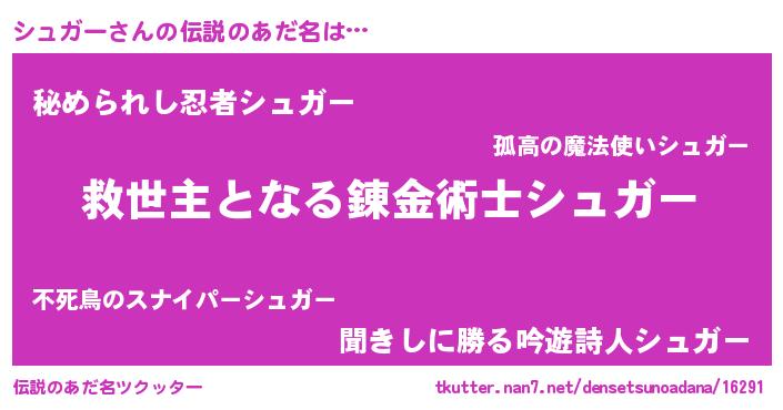 | ヒーロー風カッコイイあだ名 | 『天空の使者シュガー』『ネオシュガー』 |