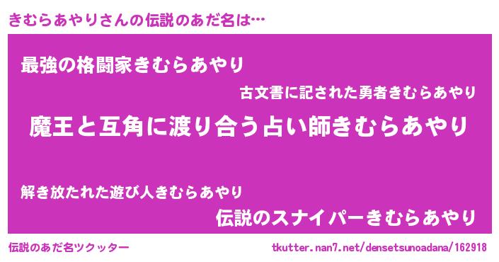 | 意味不明あだ名 | 『住所不定無職きむらあやり(43歳)』 |